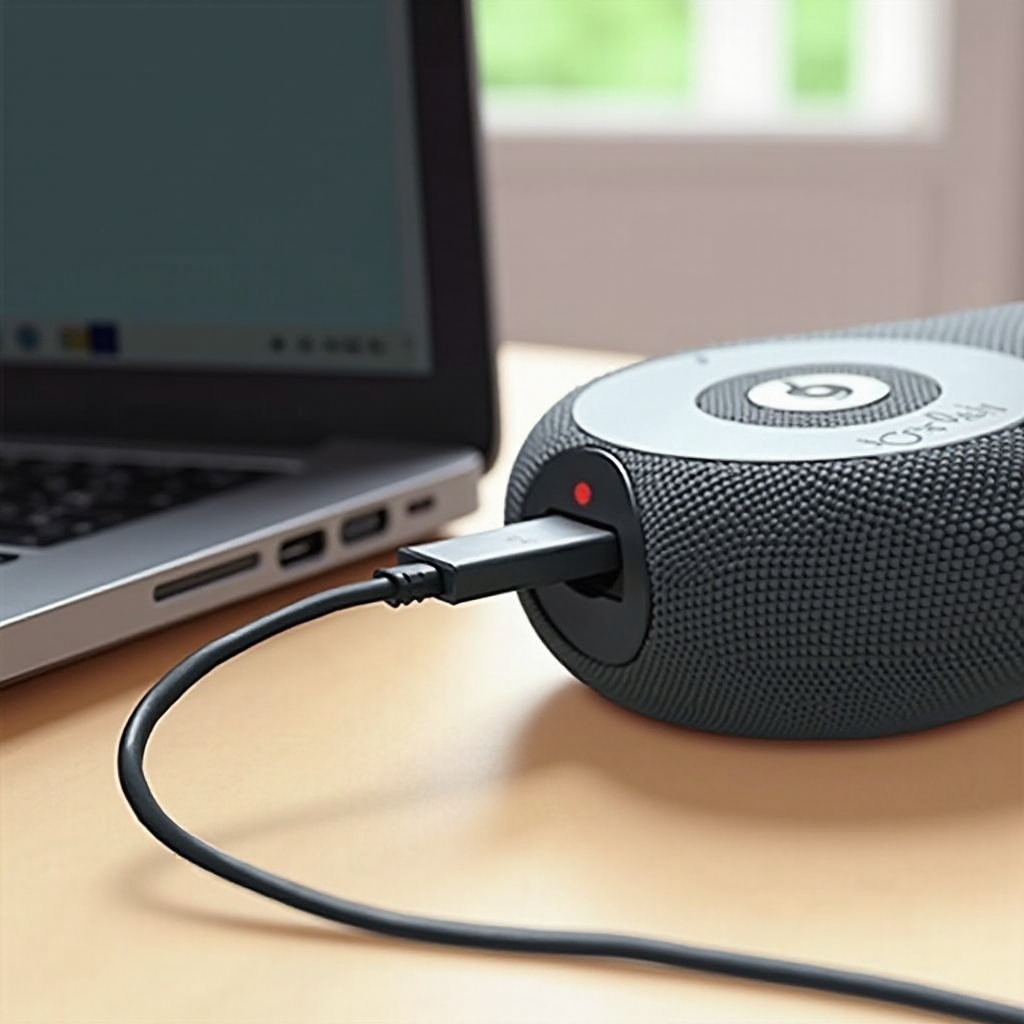 - Осторожно вставьте USB-кабель для зарядки, предназначенный для вашего динамика, в порт зарядки. Эта точность помогает предотвратить возможные повреждения порта.